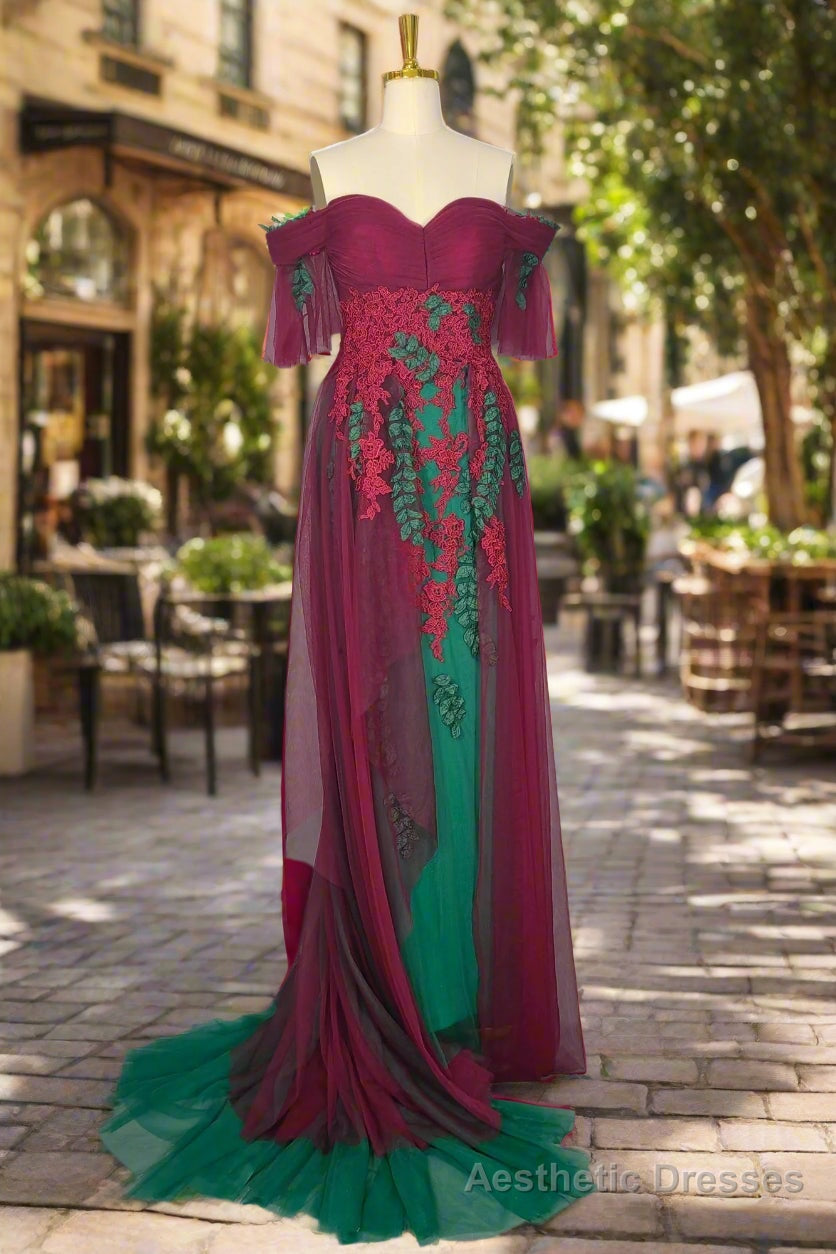 Elegant Green Off The Shoulder Tulle Prom Dresses Vintage Prom Gowns
