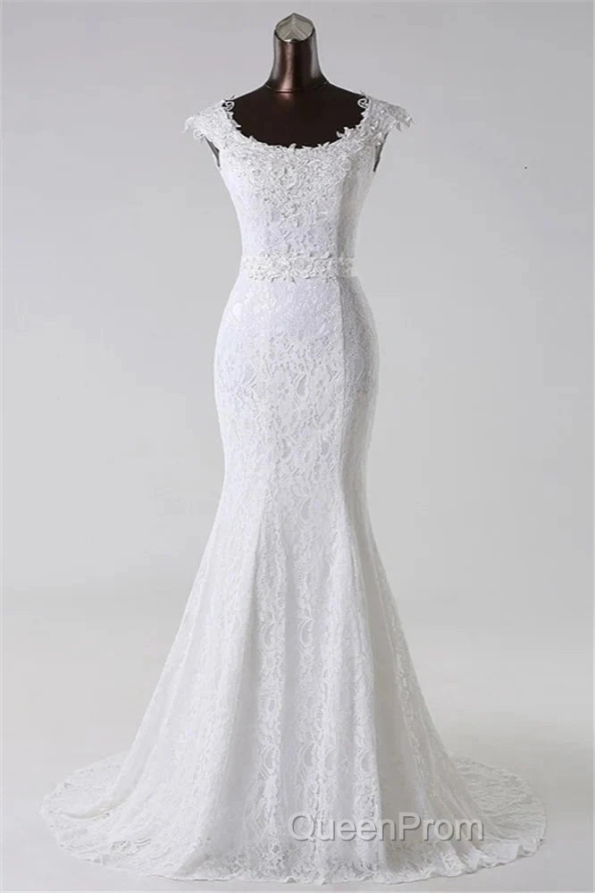 Elegant Jewel Long Lace Mermaid Wedding Gown With Appliques