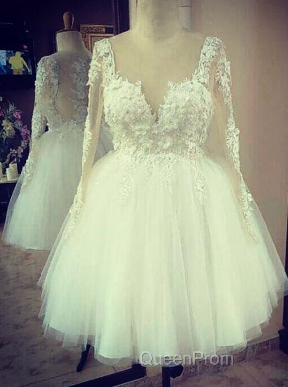 Elegant Lace Appliques Long Sleeves Bride Wedding Dresses Short