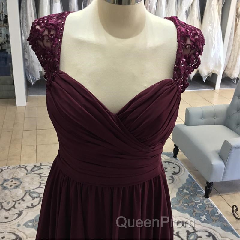 Elegant Long Chiffon Backless Bridesmaid Dresses Lace Cap Sleeves