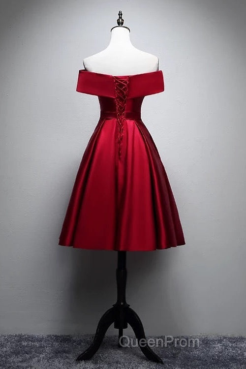 Elegant Off Shoulder Satin Knee Length Bridesmaid Dresses