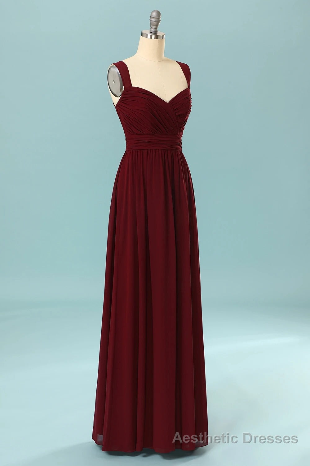 Elegant Pleated Burgundy Bridesmaid Dress with Keyhole