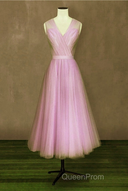 Elegant Pleated Tulle Midi Evening Prom Party Dresses