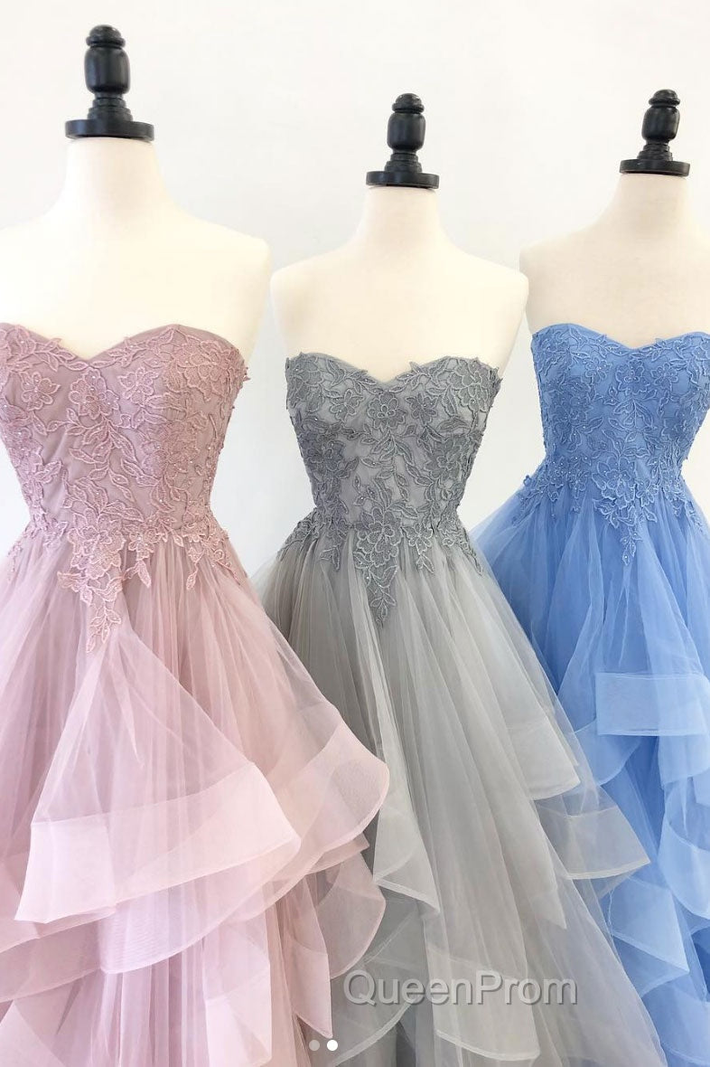 Elegant sweetheart tulle lace long Evening Prom Dresses tulle formal Dresses
