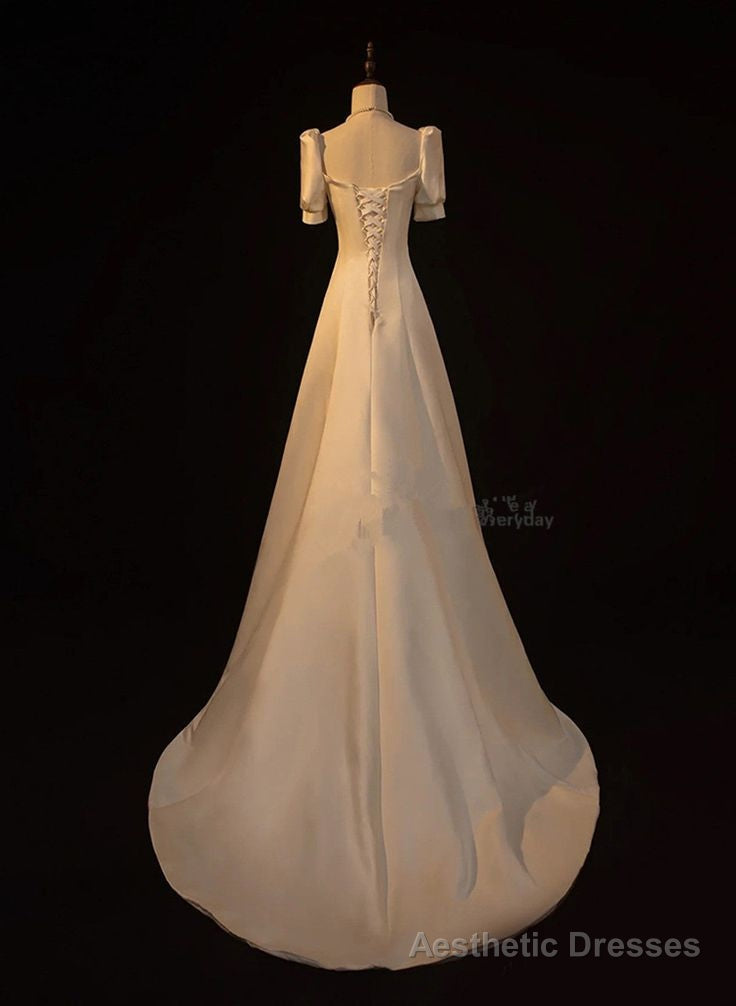 Elegant White Satin A-line Wedding Party Dress Long Prom Dress Evening Gown