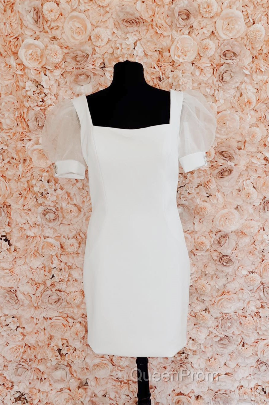 Fuchsia Puff Sleeves Square Neck Sheath Homecoming Dresses