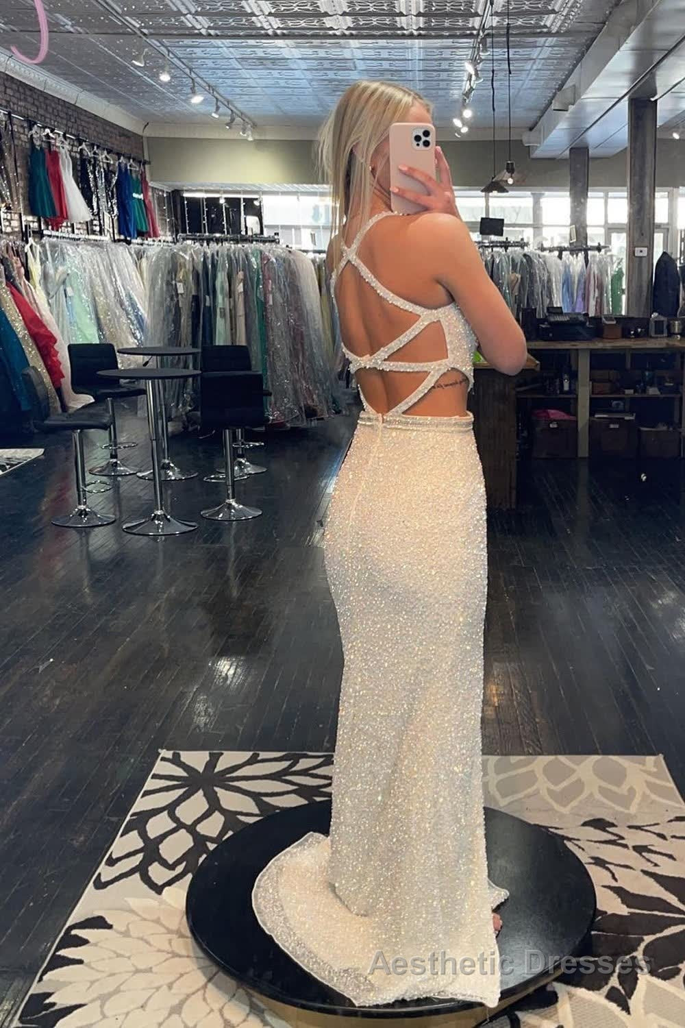 Fuchsia Sequins Criss Cross Straps Prom Dress