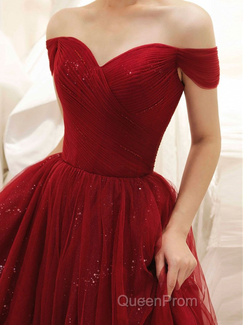 Glam Wine Red Sweetheart Tulle Shiny Long Evening Prom Dresses Party Dresses, Wine Red Formal Dresses