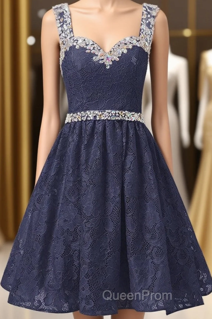 Gorgeous A Line Straps Knee Length Lace With Beading Homecoming Dresses