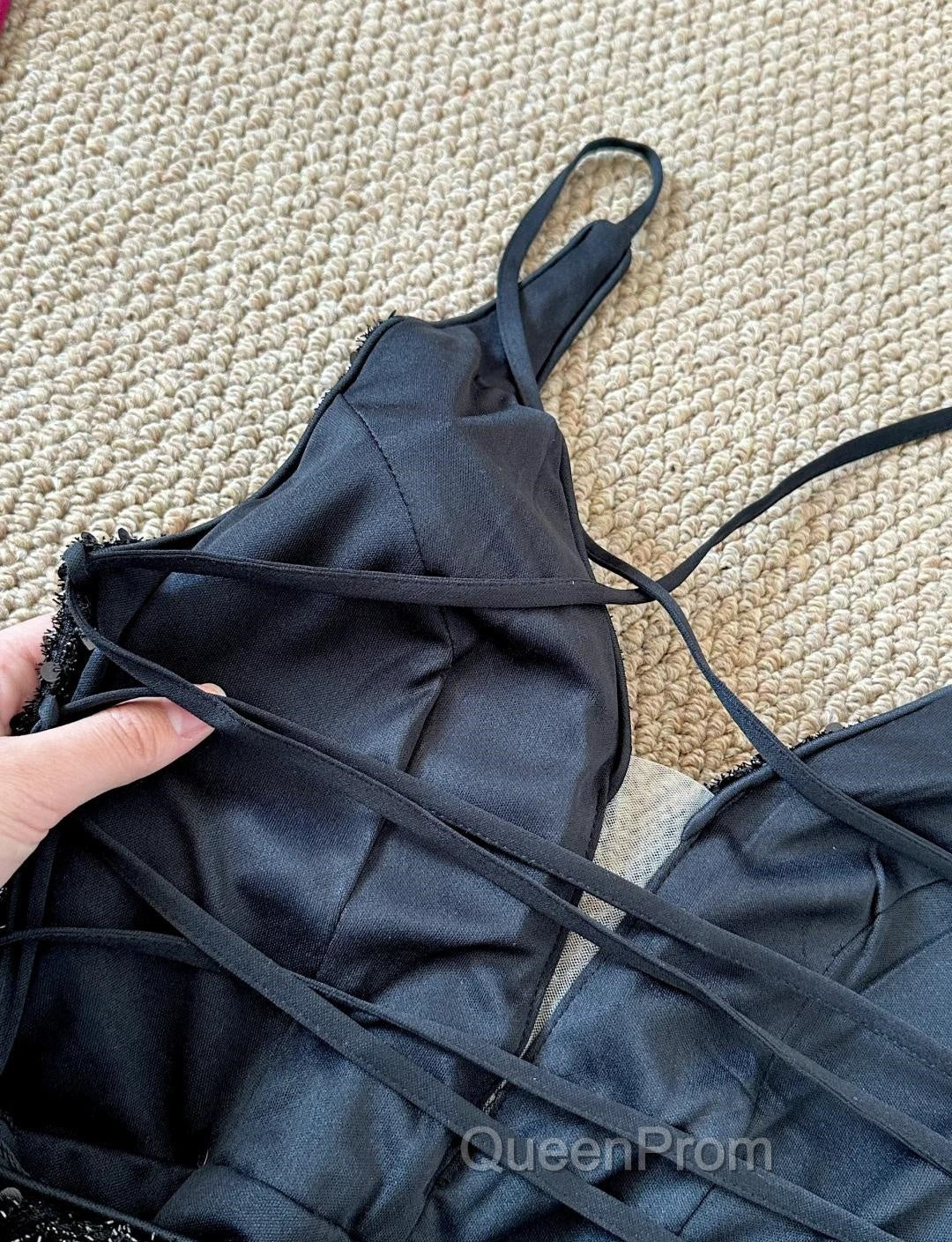Gorgeous Black Sequin Mermaid Spaghetti Strap Vling Long Evening Prom Dresses Backless Formal Evening Dresses