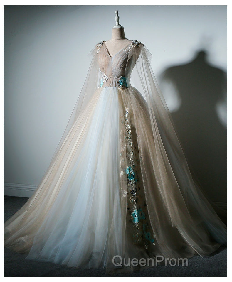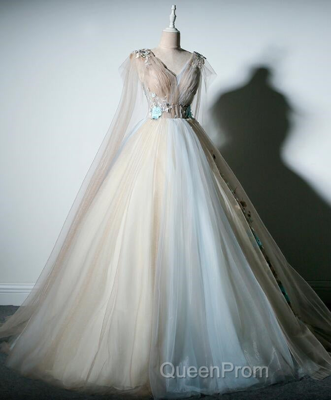 Gorgeous Champagne Tulle V-Neckline Sweet 16 Dresses, Quinceanera Dresses