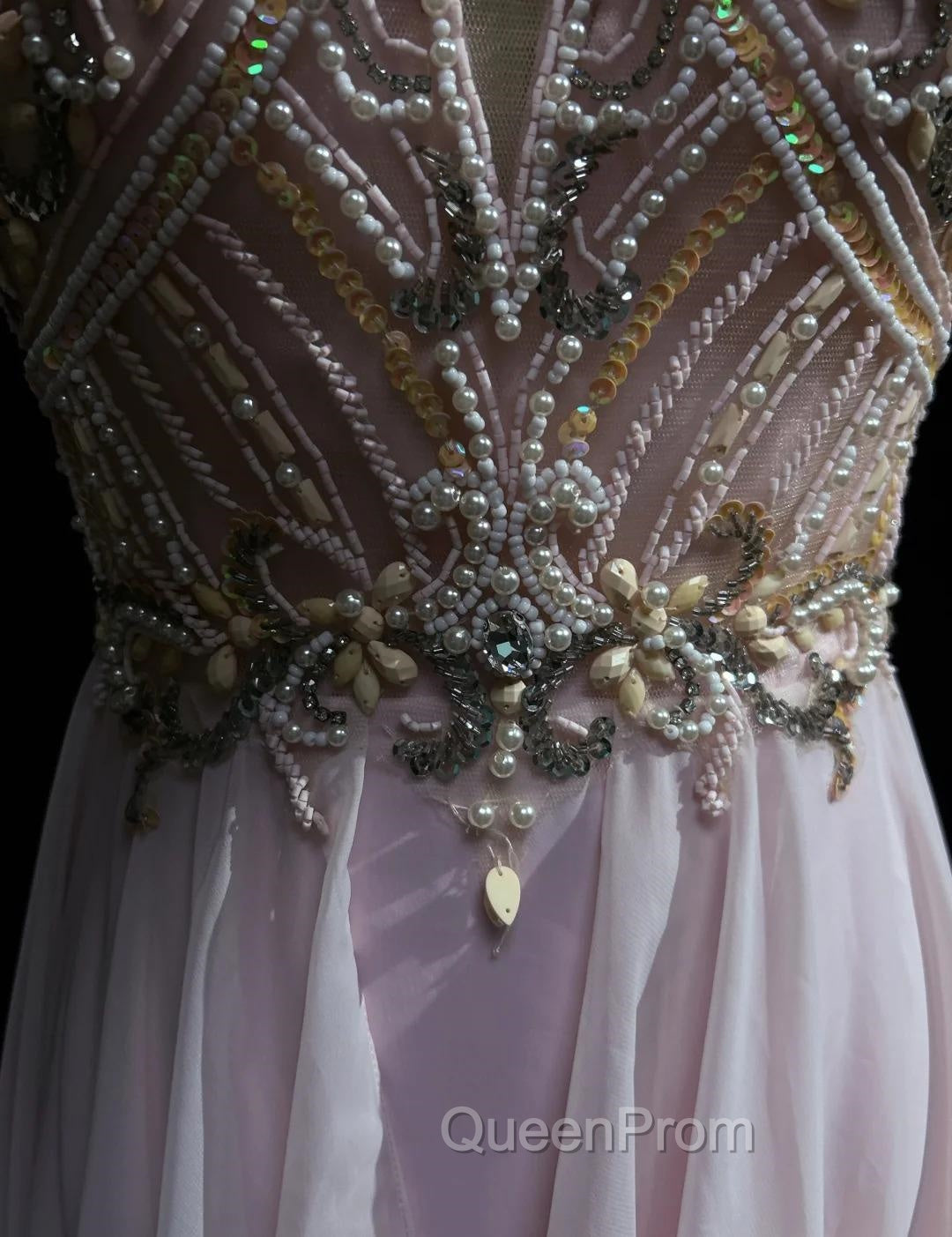 Gorgeous Pink A-Line Tulle High Neck Chiffon Long Beaded Backless Evening Prom Dresses Retro Wedding Birthday Dresses