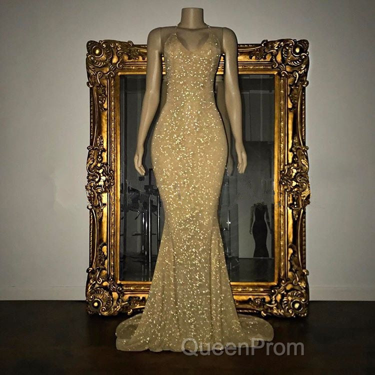 Gorgeous Sequined Mermaid Spaghetti-Strap Long Sleevesless Evening Prom Party Gowns