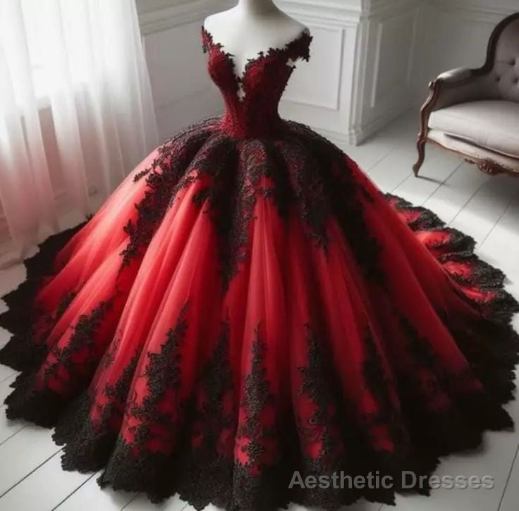 Gothic Red and Black Off the Shoulder Evening Dress Prom Dresses