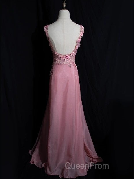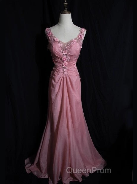 Gray Pink Retro Mermaid V-Neck Chiffon Beaded Long Evening Prom Dresses Sweet Applique Birthday Dresses