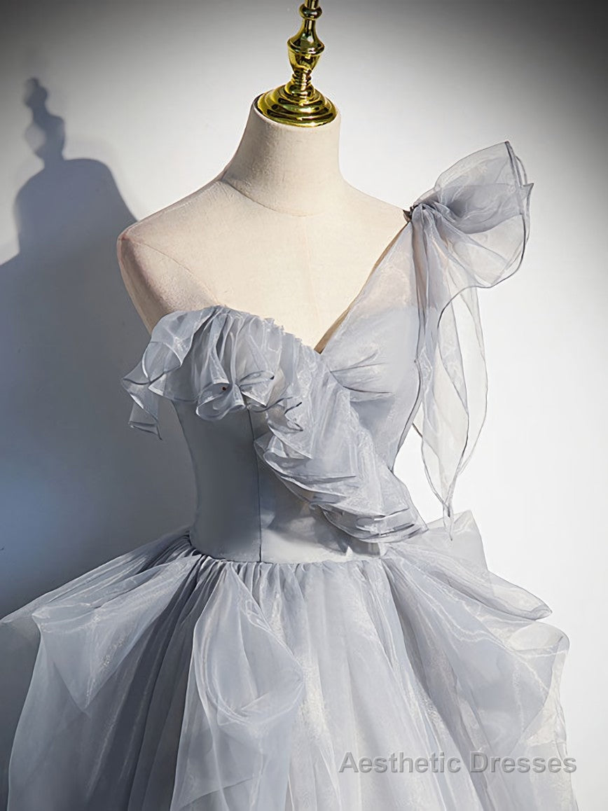 Gray Sweetheart Tulle Long Prom Dress, Gray Evening Dress