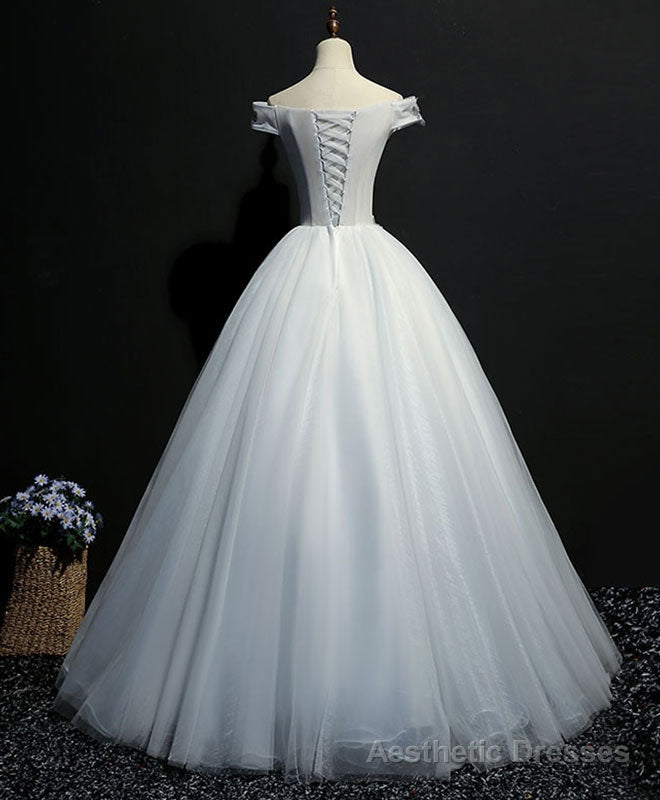 Gray Tulle Lace Off Shoulder Long Prom Gown Tulle Lace Evening Dress
