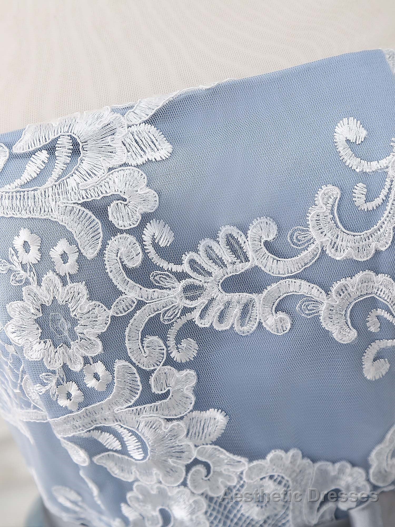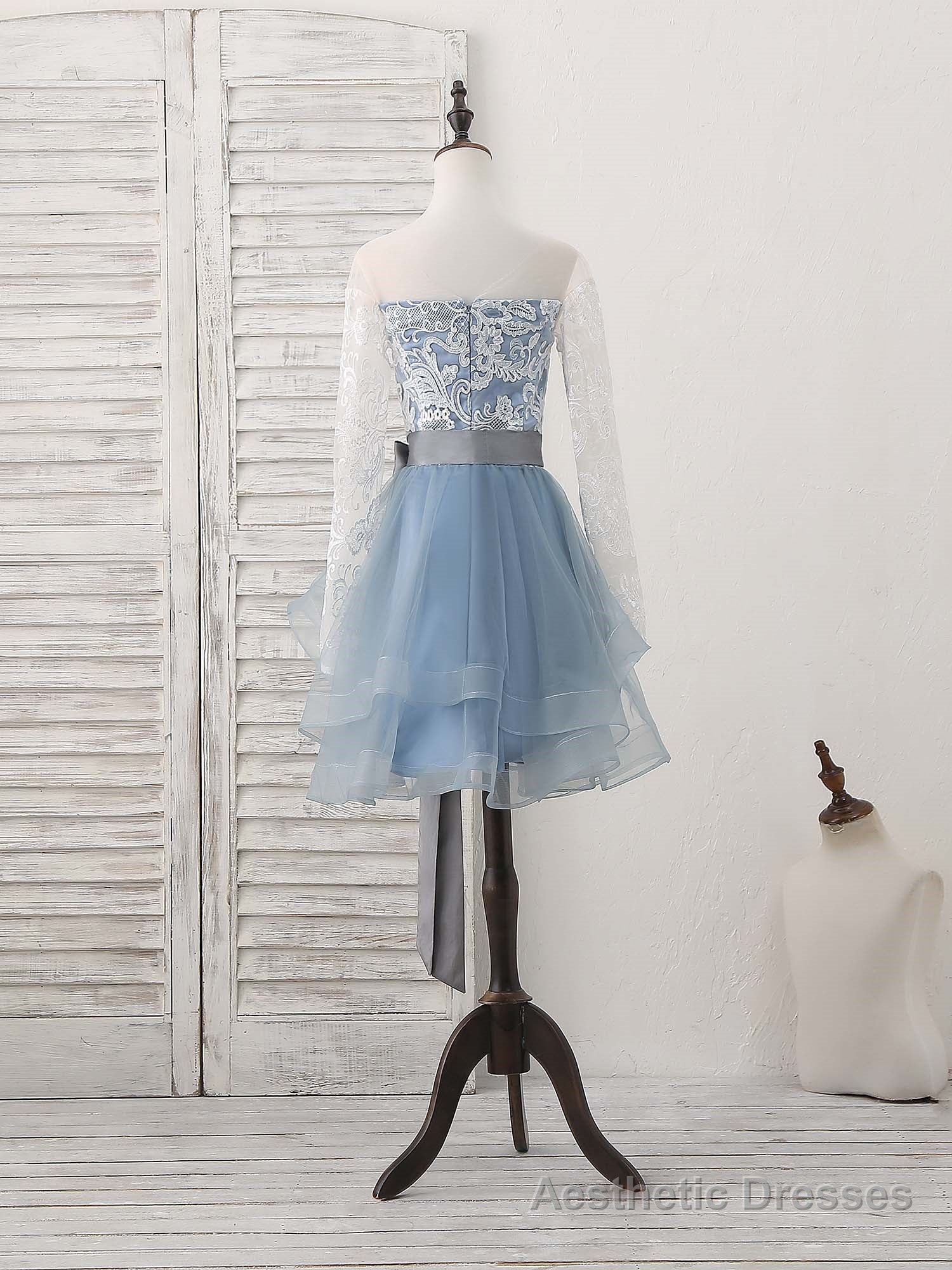 Gray Tulle Lace Short Prom Dress, Gray Tulle Prom Dress
