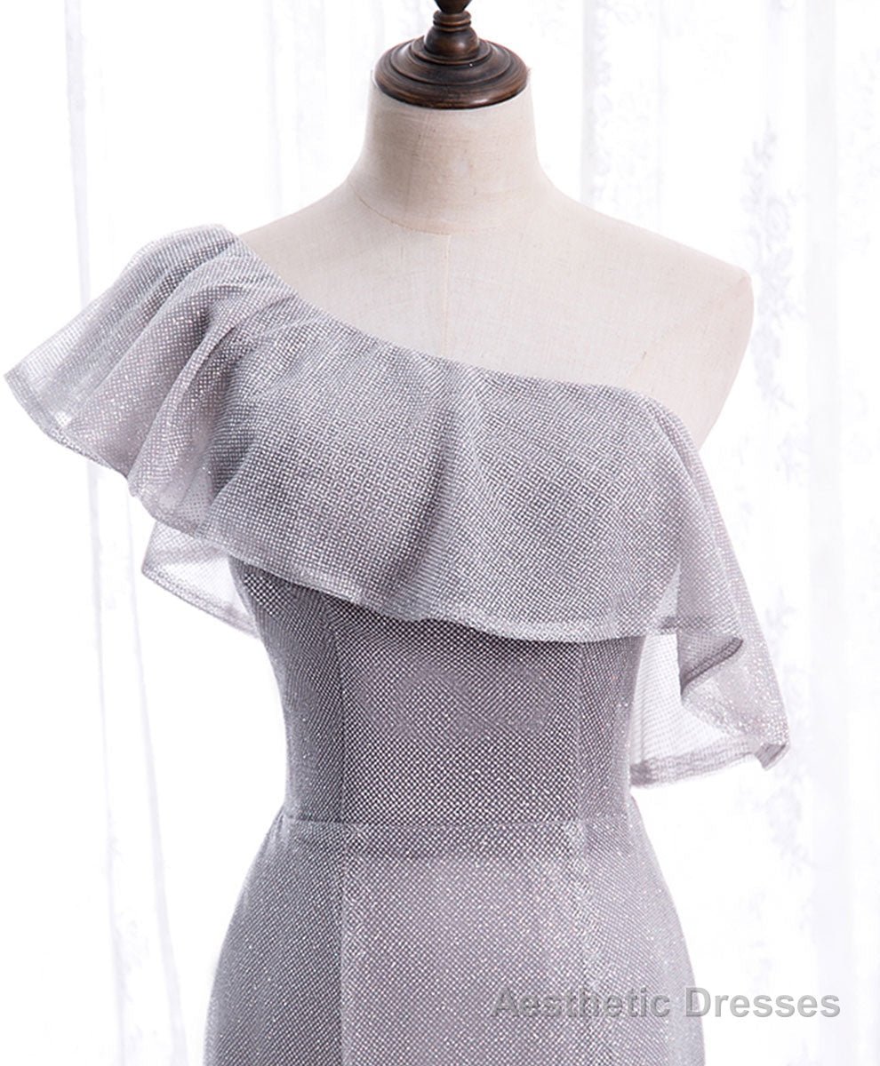 Gray Tulle Mermaid Long Prom Dress Gray Tulle Formal Dress