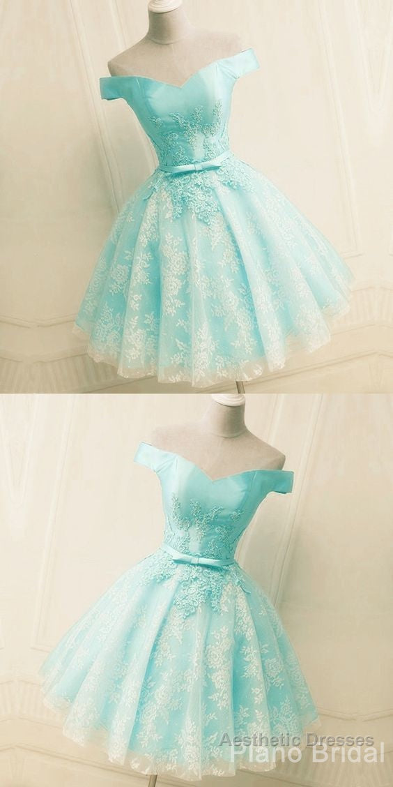 Green Off The Shoulder Appliques Short Homecoming Dress