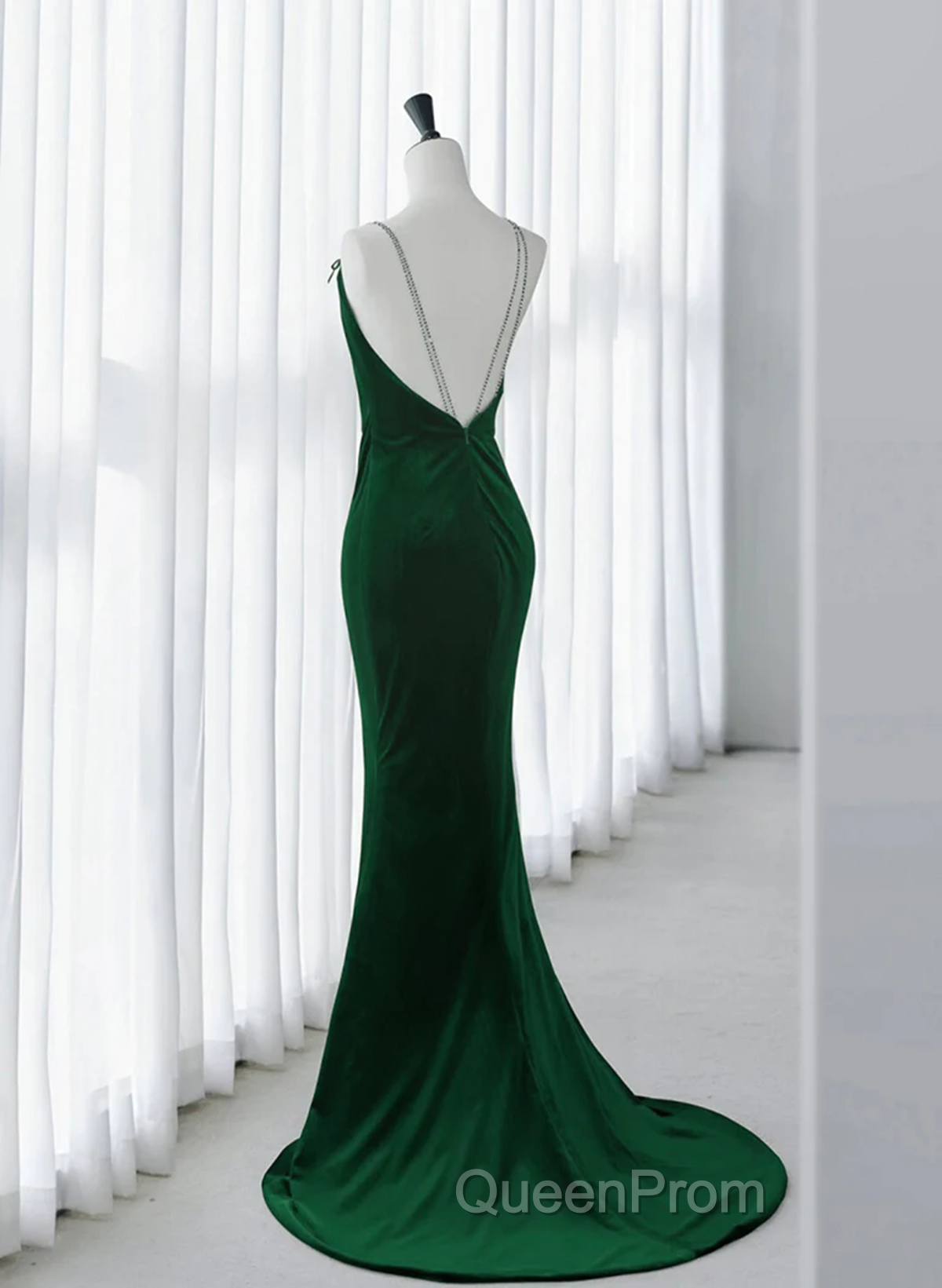 Green Velvet Mermaid Straps Long Formal Dresses, Green Evening Dresses Party Dresses