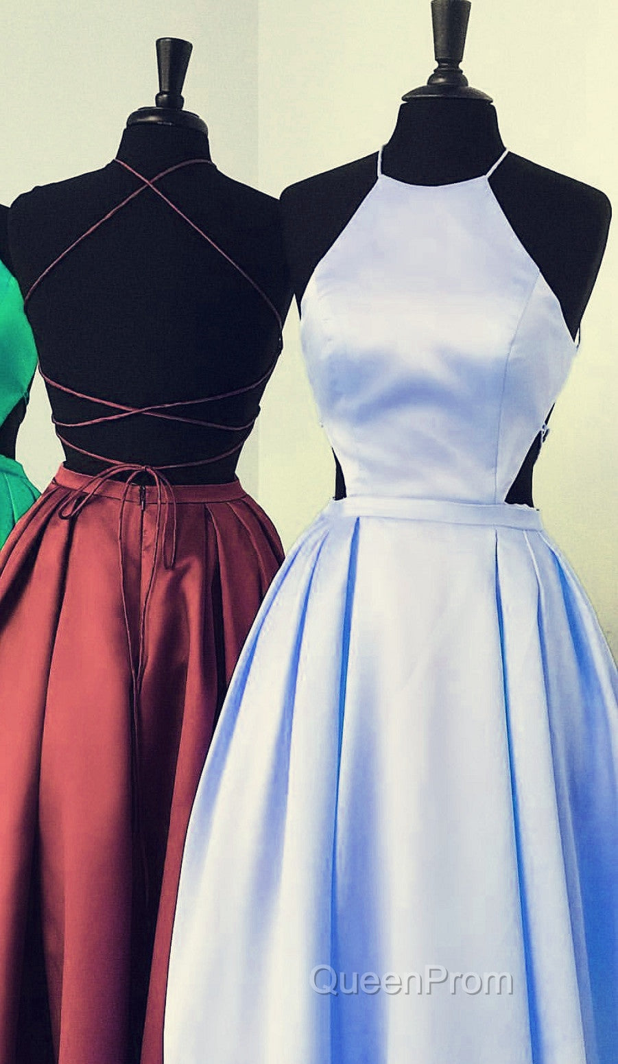 Halter Evening Prom Long Satin Gown Dresses Lace Up Back