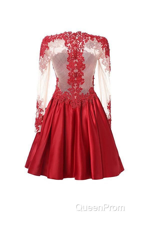 High Neck Long Sleeves With Applique Red Homecoming Dresses