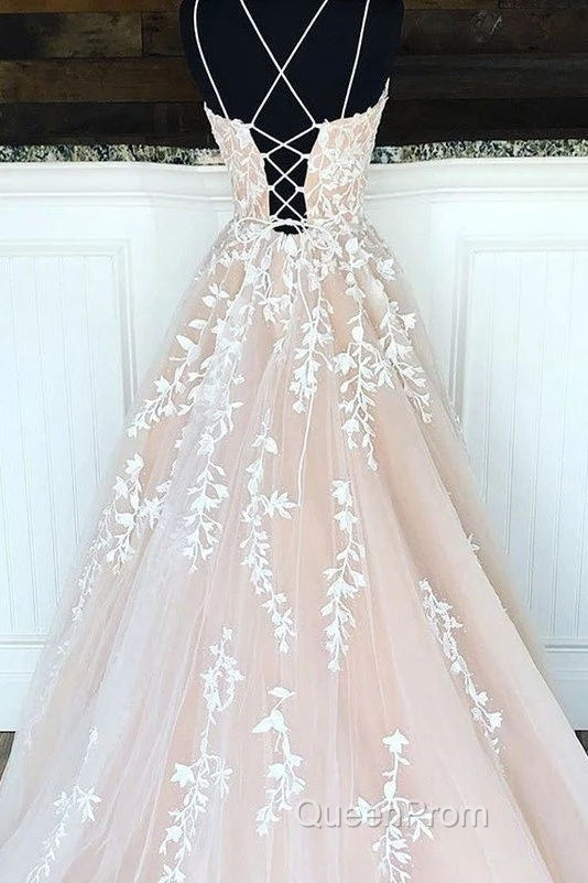 Hottest Elegant Spaghetti Straps Backless Lace Long Princess Evening Prom Dresses For Teens