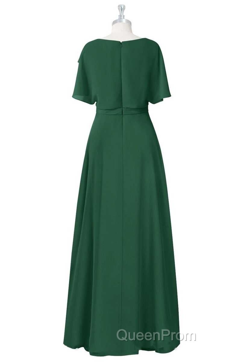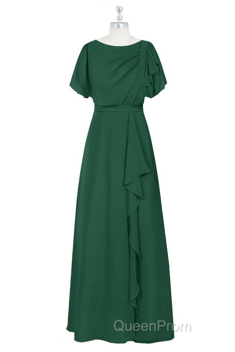 Hunter Green Chiffon Ruffled Long Bridesmaid Dresses