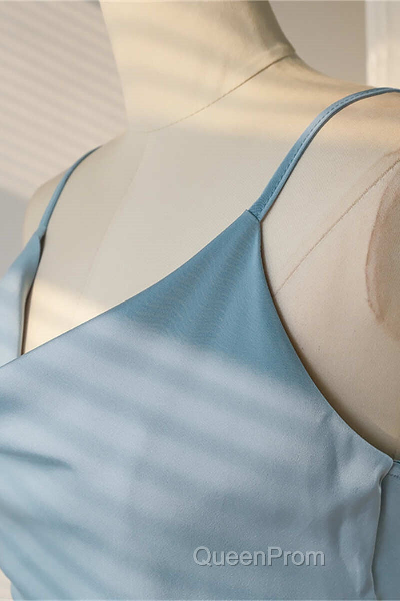 Ice Blue Cowl Neck Mid-Calf Length Bridesmaid Dresses