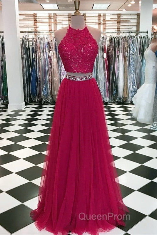 Lace Crop Top Tulle Evening Prom Dresses Two Piece Evening Gowns Beaded Sashes