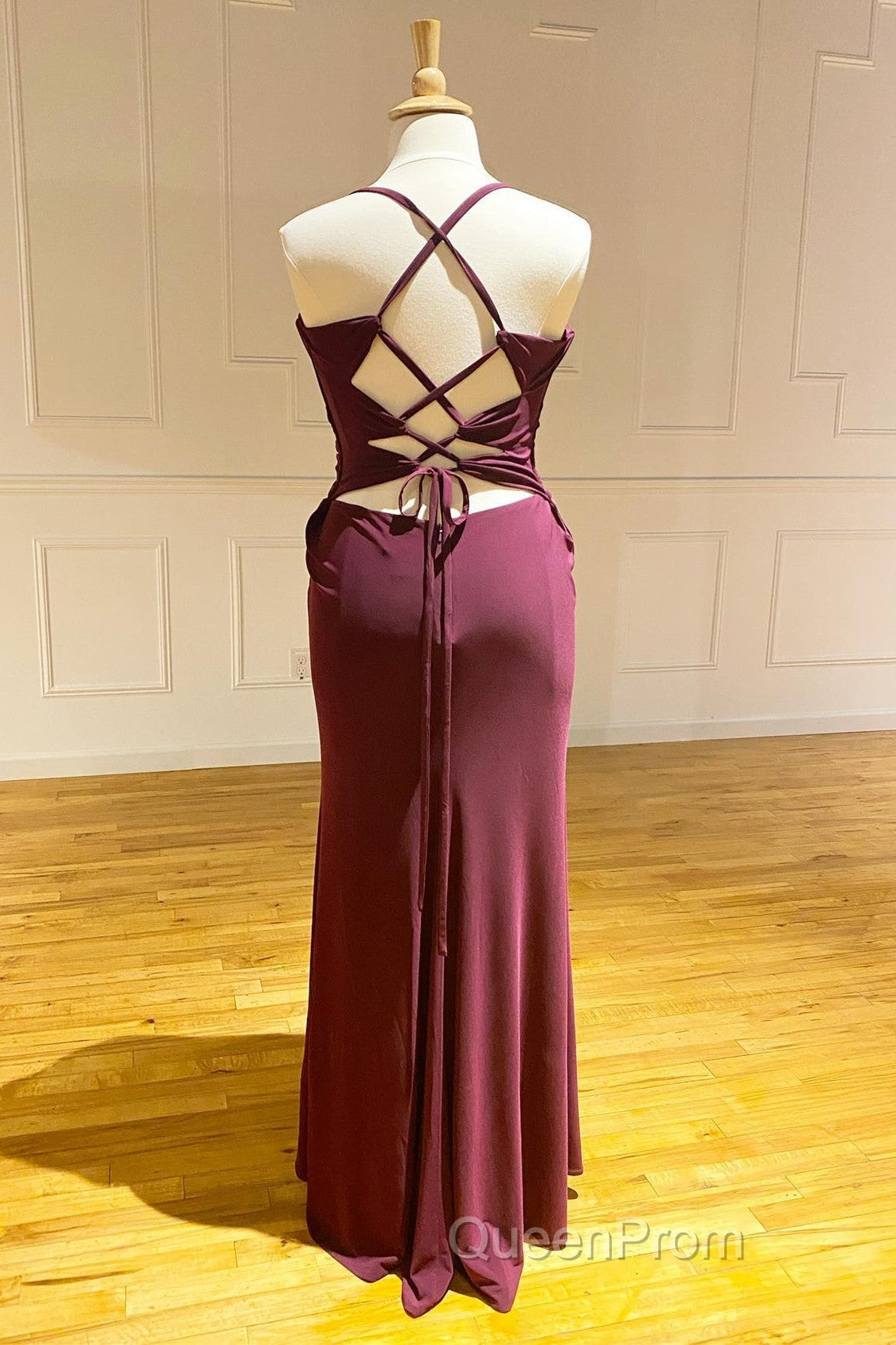 Lace-Up Burgundy Pleated Chiffon Bridesmaid Dresses