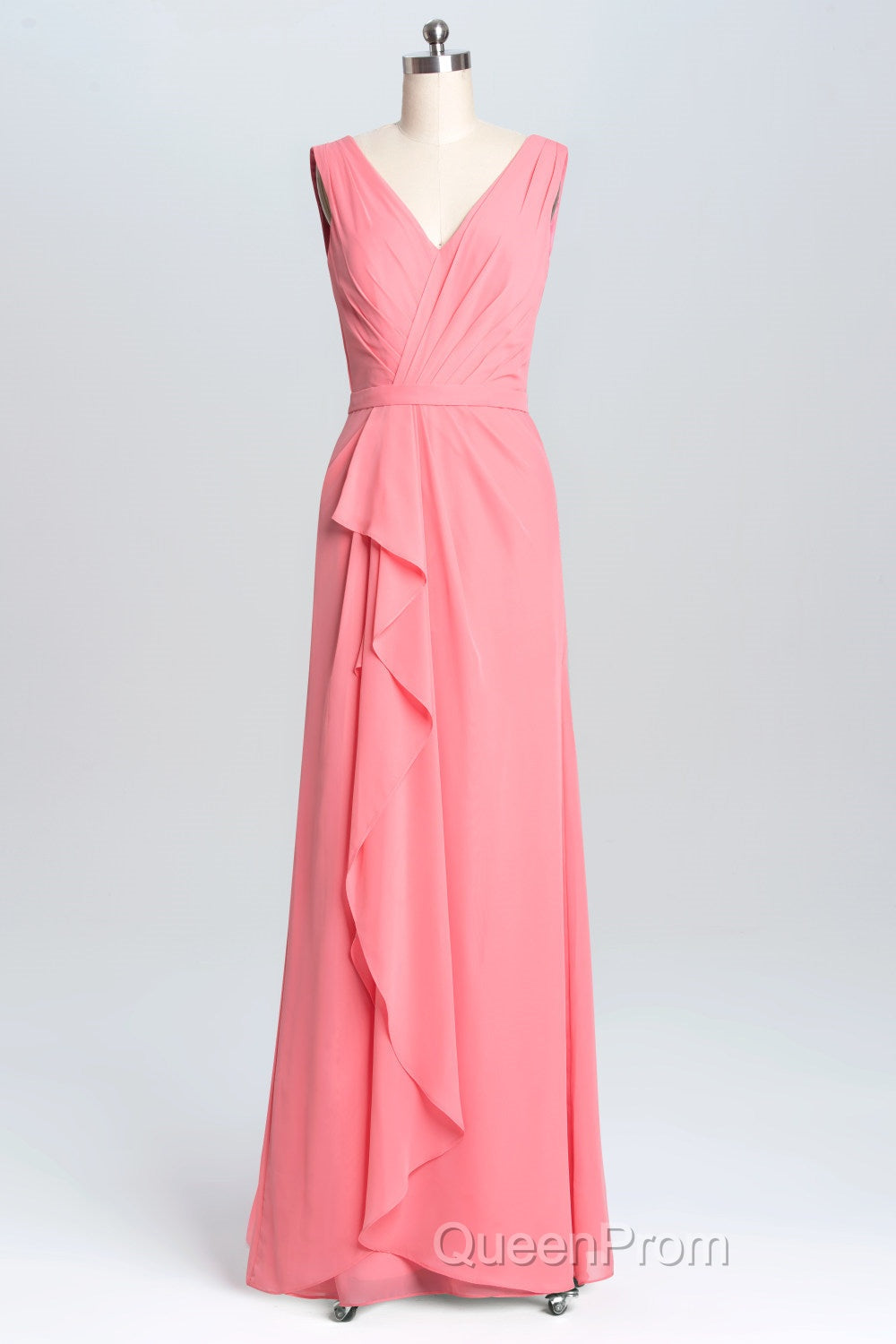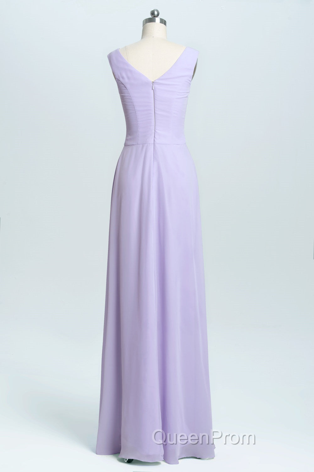 Lavender Chiffon A-line Ruffles Long Bridesmaid Dresses