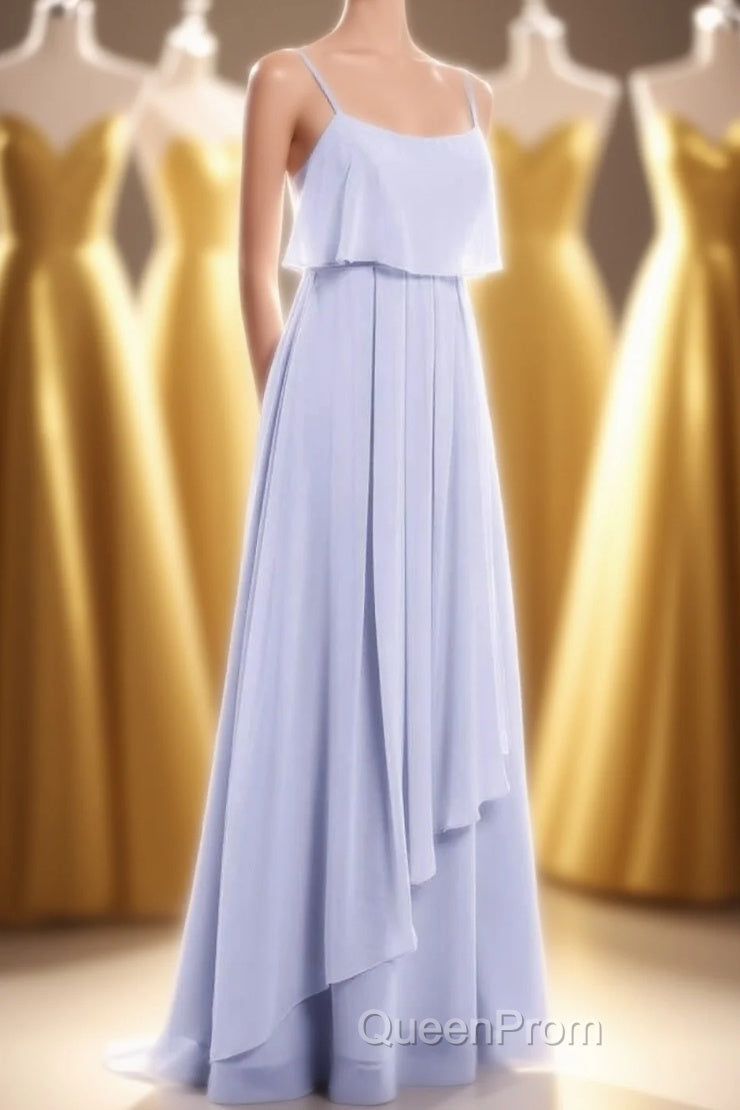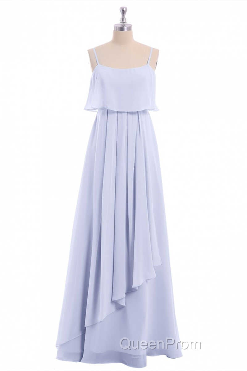 Lavender Chiffon Spaghetti Straps Ruffled A-Line Long Dresses