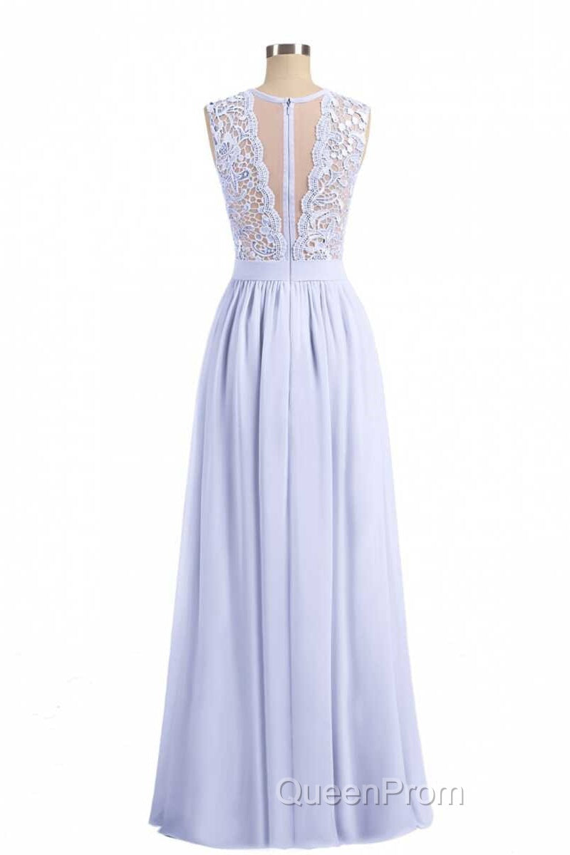 Lavender Lace Crew Neck A-Line Bridesmaid Dresses