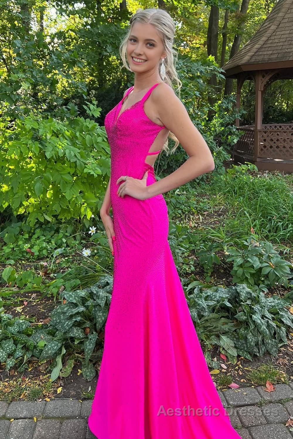 Lavender Rhinestone Spaghetti Straps Mermaid Prom Dress