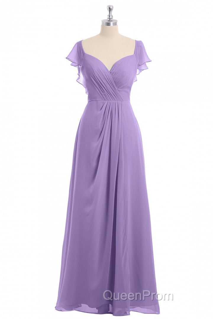 Lavender Sweetheart Ruffled A-Line Long Bridesmaid Dresses