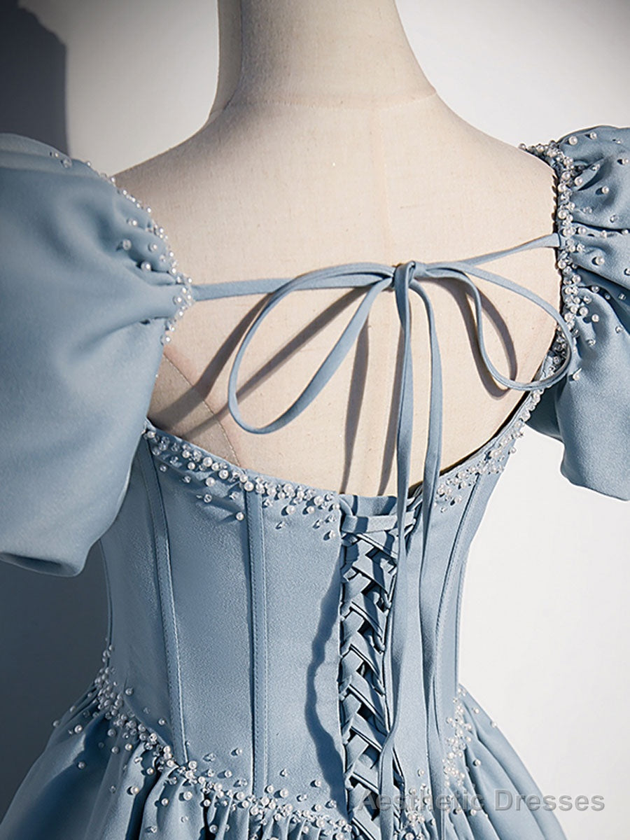 Light Blue Satin Long Prom Dress, Light Blue Formal Sweet 16 dress