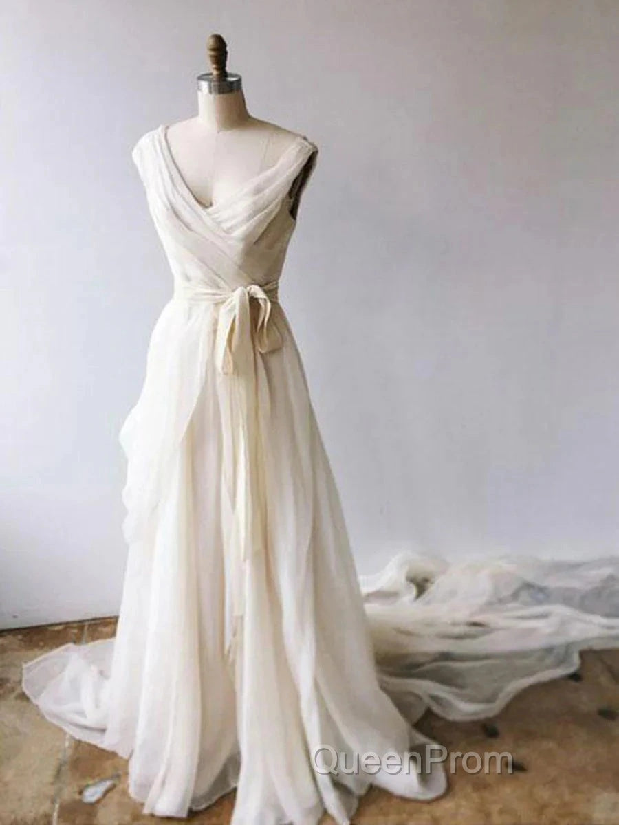 Light Champagne Chiffon Long Wedding Dresses