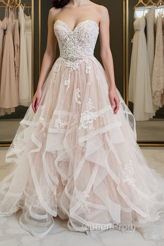 Light champagne tulle lace long Evening Prom Dresses champagne evening Dresses