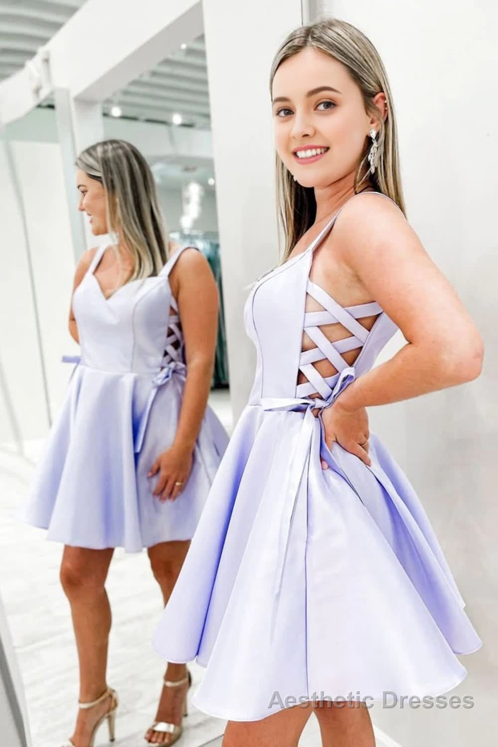 Light Purple A Line Straps Homecoming Dress