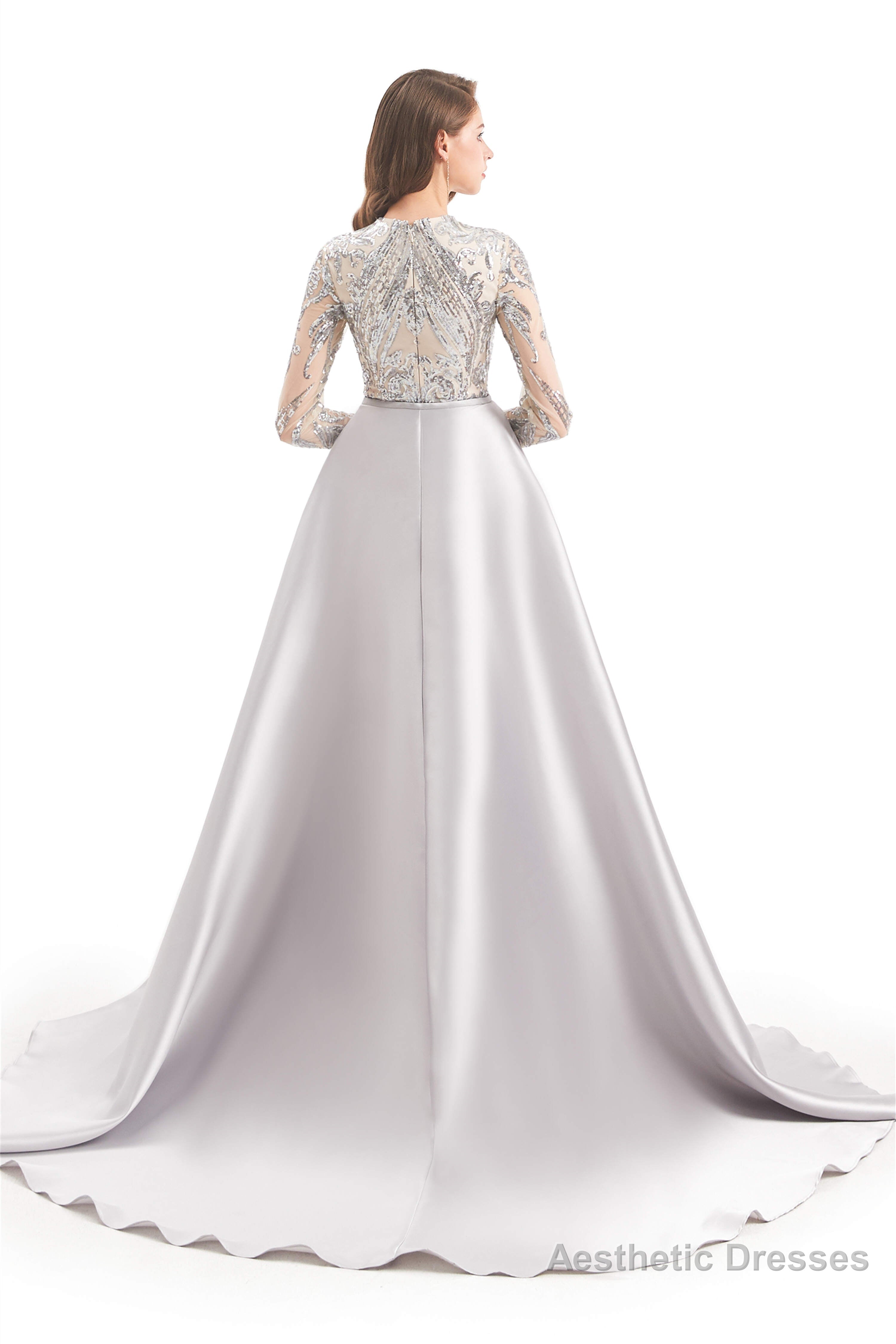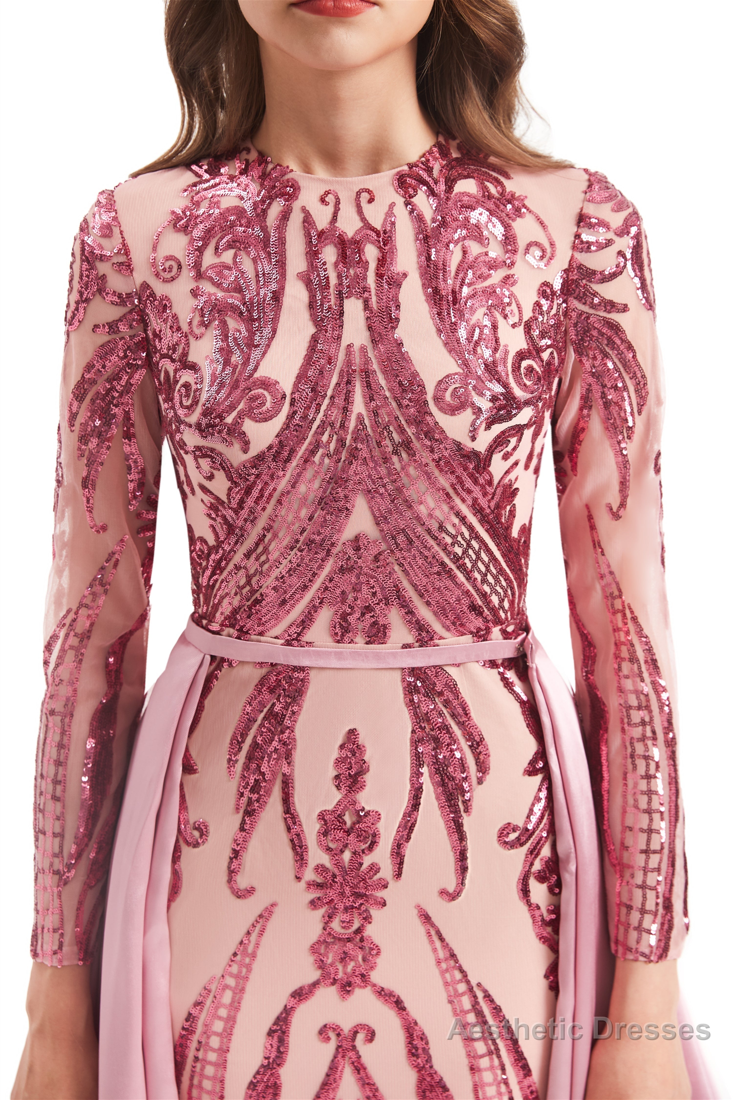 Long Sleeves Mermaid Detachable Train Prom Dresses with Train Sequined