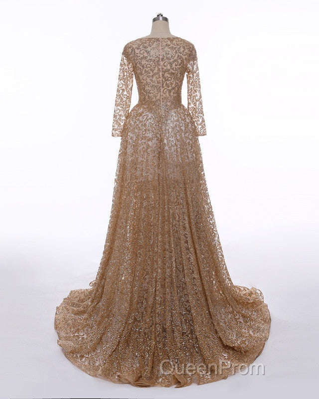 Long Sleeves Sequin Gold Mermaid Evening Prom Dresses