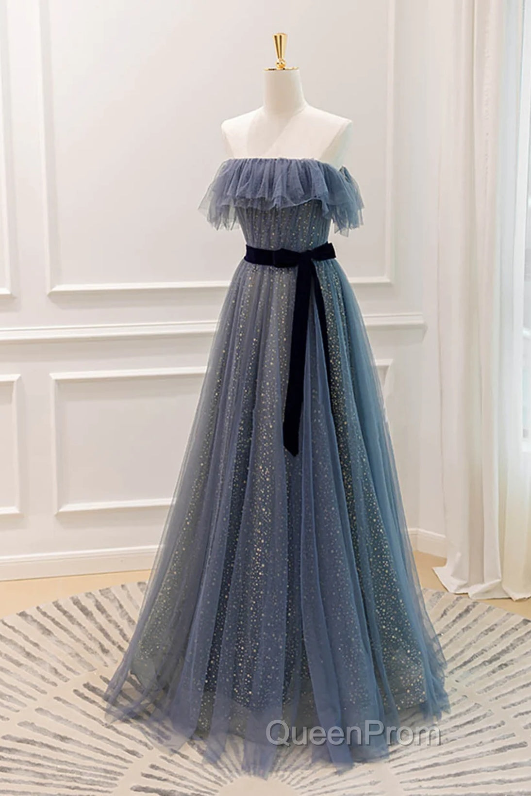Lovely Blue A-Line Shiny Tulle Sweetheart Party Dresses, Blue Long Formal Dresses Evening Prom Dresses