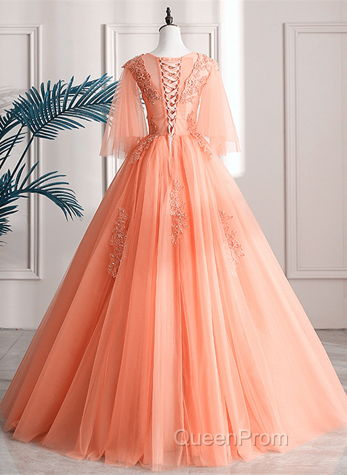 Lovey Tulle V-Neckline Long Party Dresses With Lace, A-Line Tulle Sweet 16 Dresses
