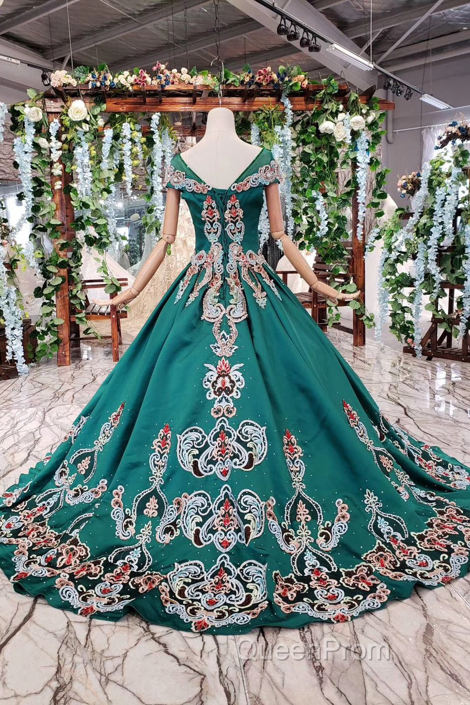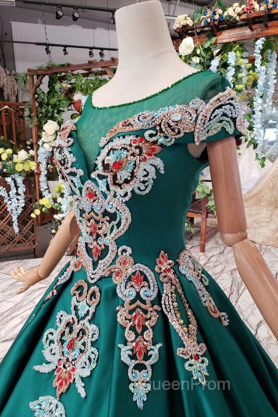 Luxury Green Round Neck Short Sleeves Evening Prom Dresses with Beading