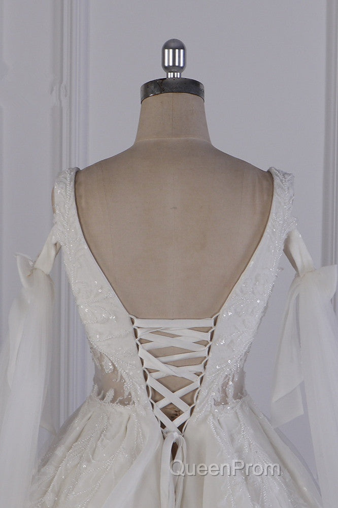 Luxury V-Neck Beadings Wedding Dresses Tulle Sleeveless Sequined Bridal Gowns