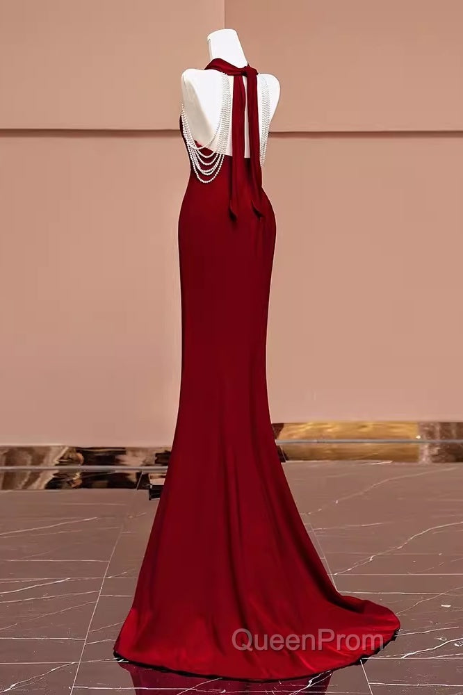 Mermaid Halter Burgundy Long Evening Prom Dresses