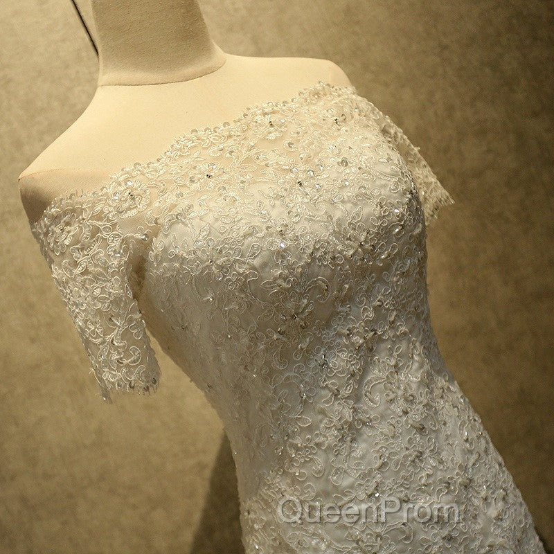 Mermaid Off Shoulder Sleeveless Lace Beading Watteau Train Wedding Dresses