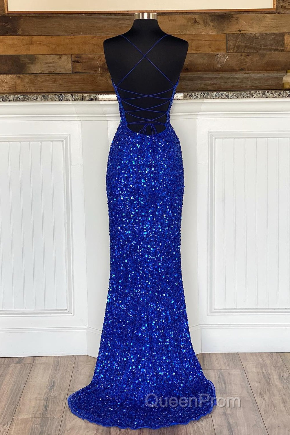 Mermaid Spaghetti Straps Royal Blue Sequins Long Evening Prom Dresses